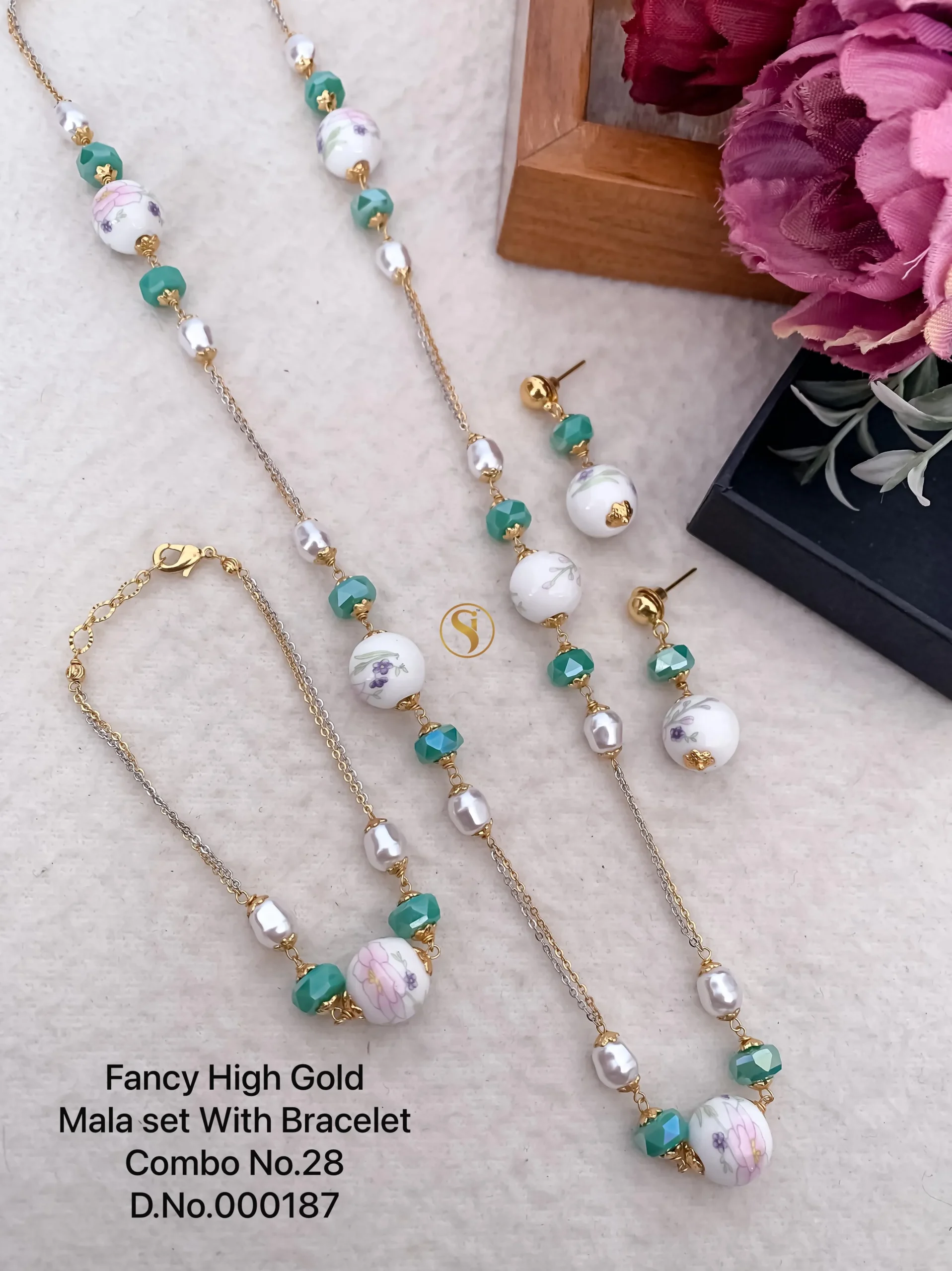 + Free ShippingA premium high gold pearl mala set arranged with classic pearls and rich gold accents designed for weddings festive wear and elegant traditional styling.|Details:|- Metal: brass+Silver +alloy with Premium Polish|- Closure: Hook|- SKU Code: JG_PRLMALA_0 (50)