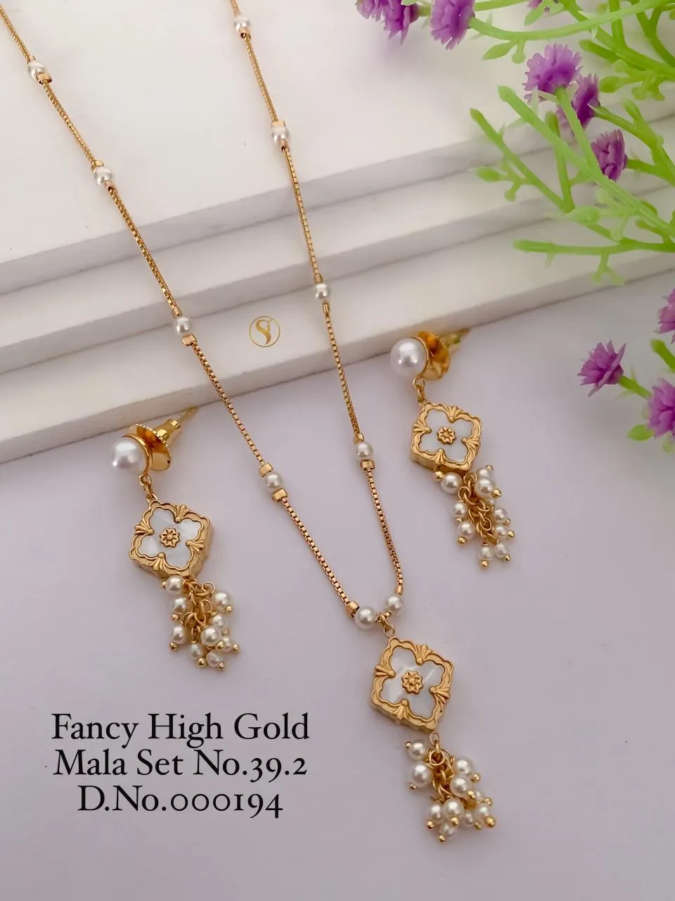 Fancy high gold floral pearl mala set design