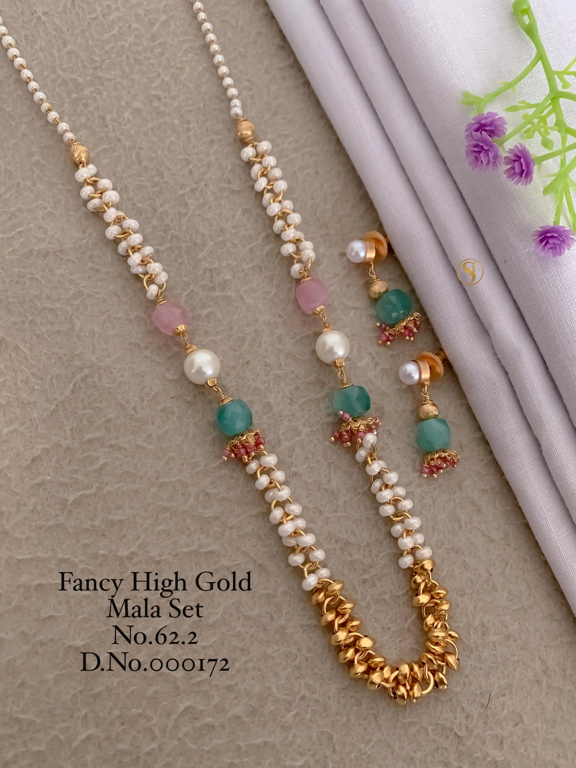 + Free ShippingAntique finish pearl mala crafted with high-polish metal and premium pearls, perfect for cultural functions, pooja events, and elegant ethnic styling.|Details:|- Metal: brass+Silver +alloy with Premium Polish|- Closure: hook|- SKU Code: JG_PRLMALA_0 (40)