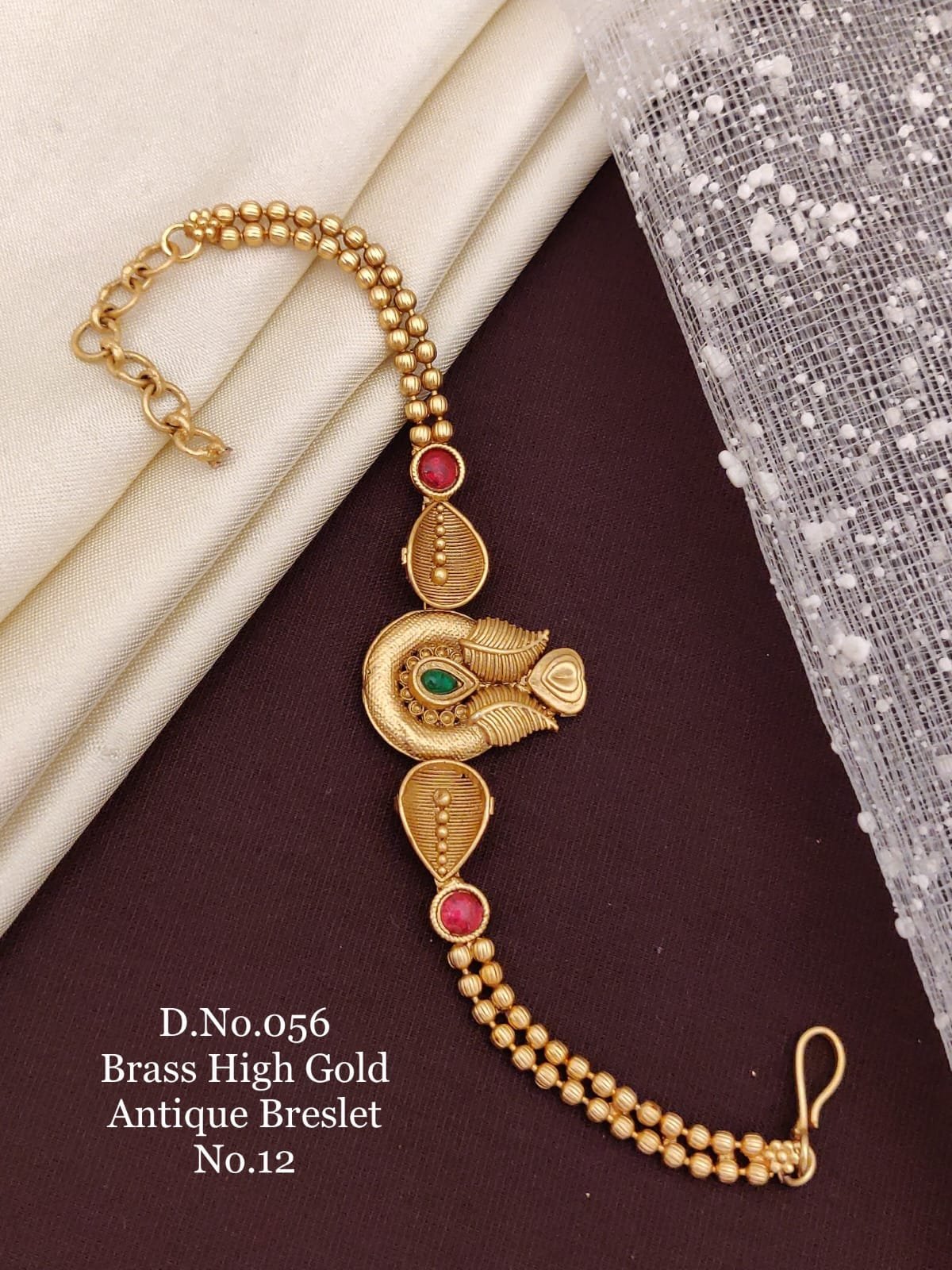 Brass high gold antique leaf floral ruby stone bracelet