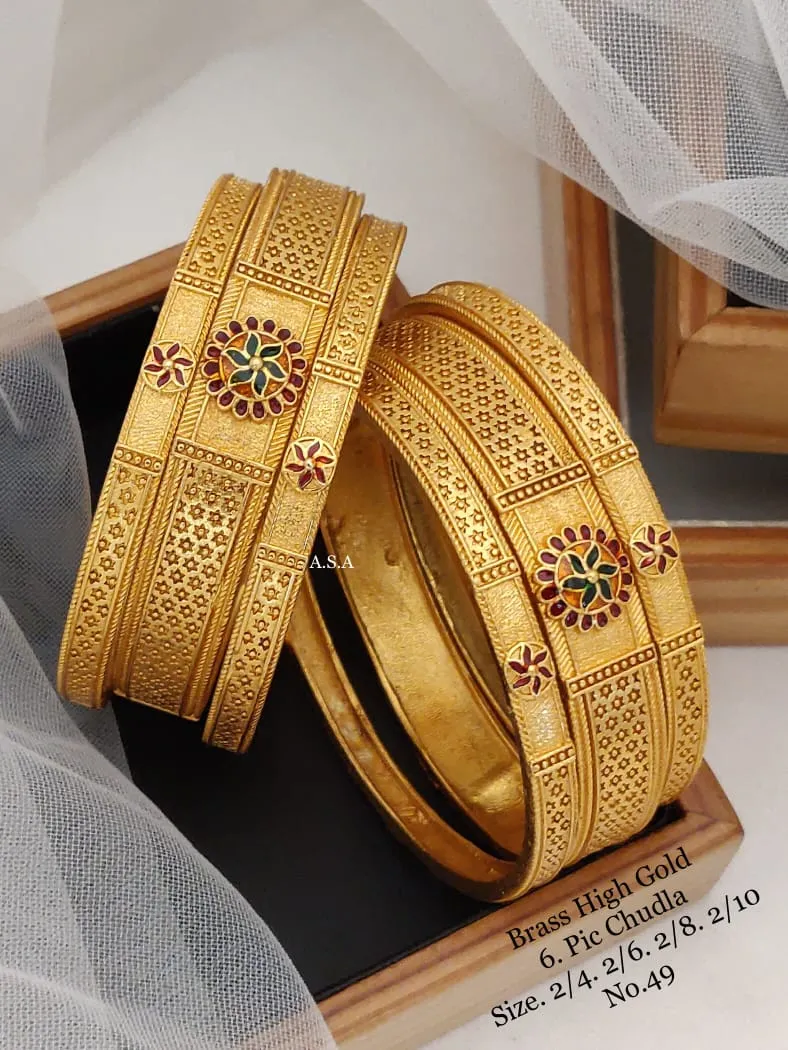 Brass high gold antique pattern floral carved designer chudi banglesBrass high gold antique pattern floral carved designer chudi bangles