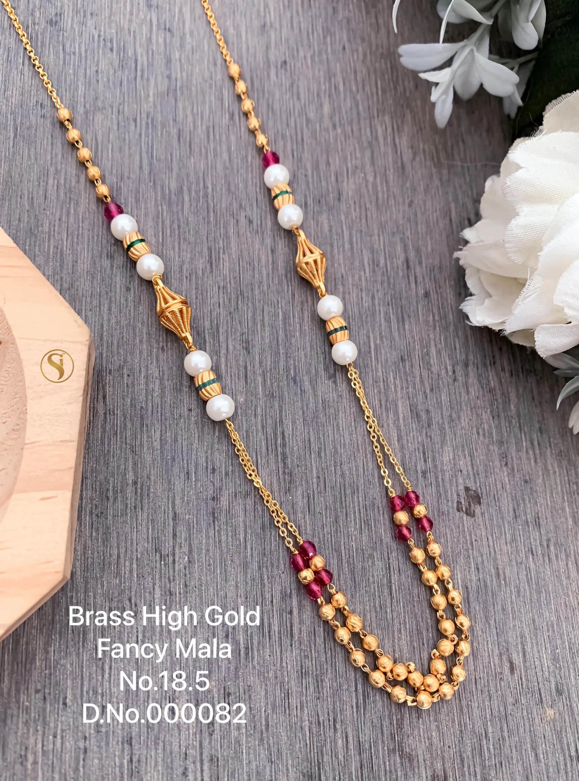 Brass high gold classic pearl ruby bead designer mala
