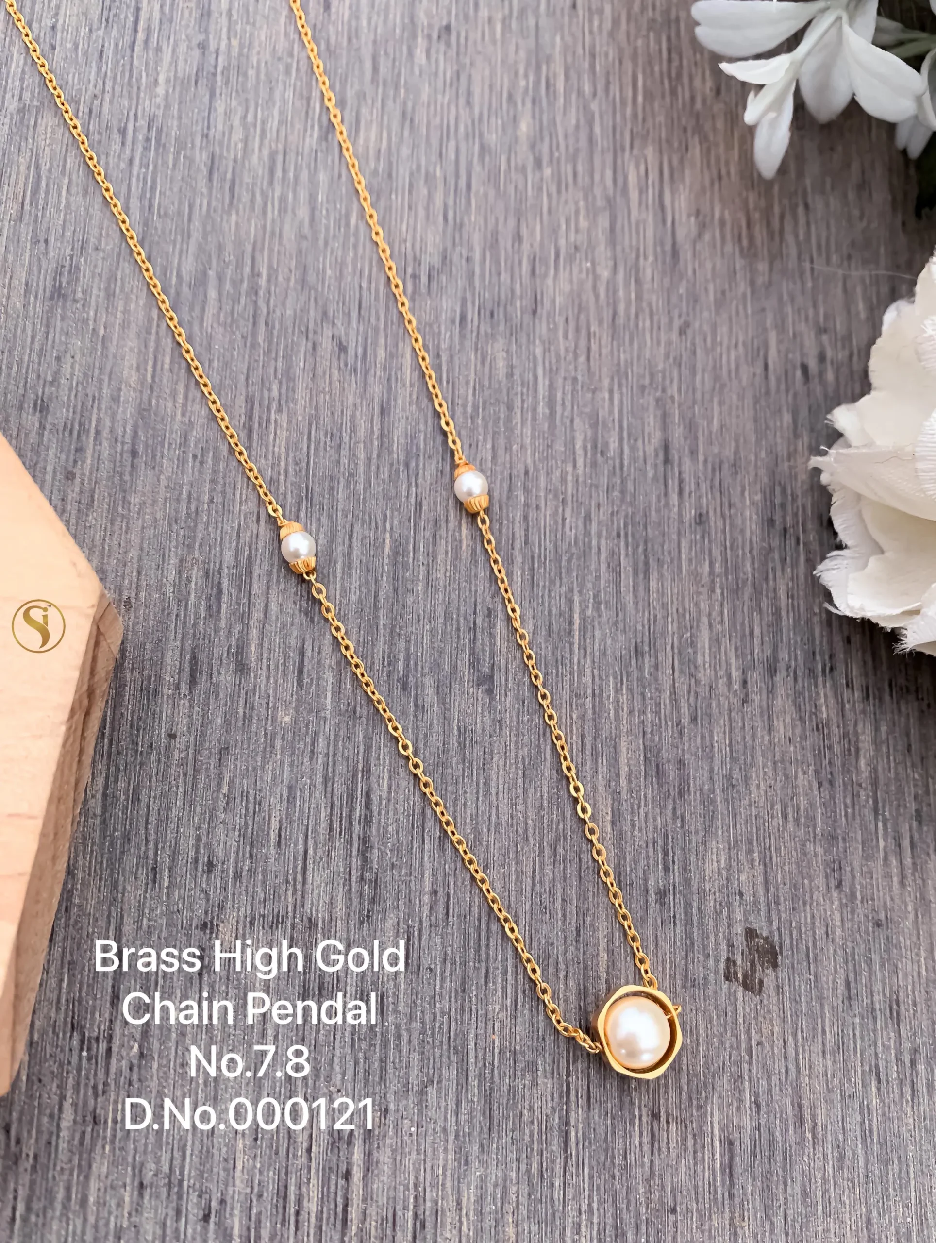 Elegant gold chain pendant featuring a delicate pearl centrepiece with soft minimal accents perfect for daily elegance and light traditional wear. The smooth high-gold finish adds timeless charm making it suitable for casual outfits festive occasions or office wear with a graceful shine that complements every skin tone.