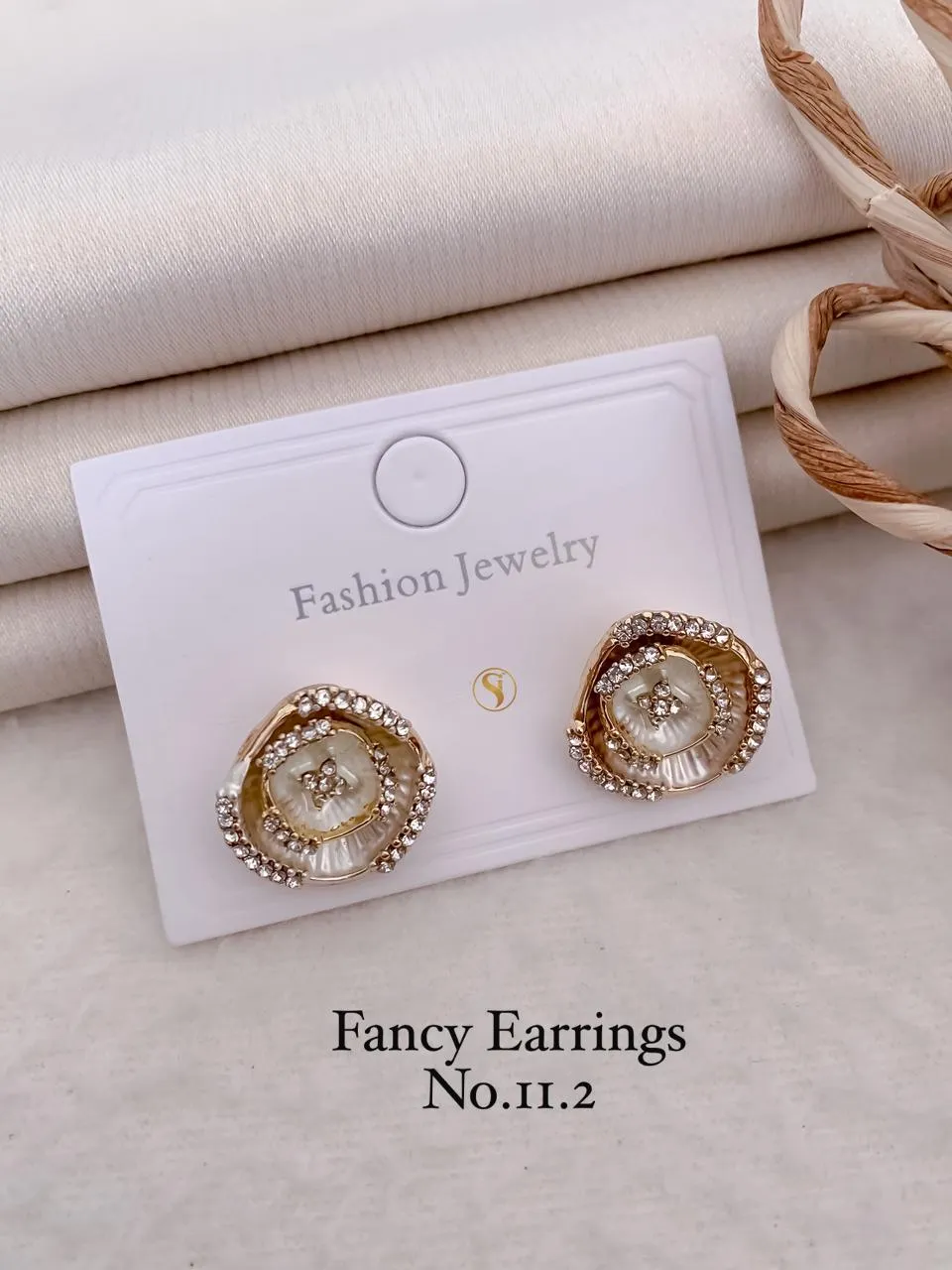 Designer rose-textured floral earrings with layered petals and sparkling accents, creating a boutique-style accessory perfect for ethnic, fusion and elegant festive dressing.|Details:|- Metal: brass+Silver +alloy with Premium Polish|- Closure: push back|- SKU Code: JG_ER_0 (18)