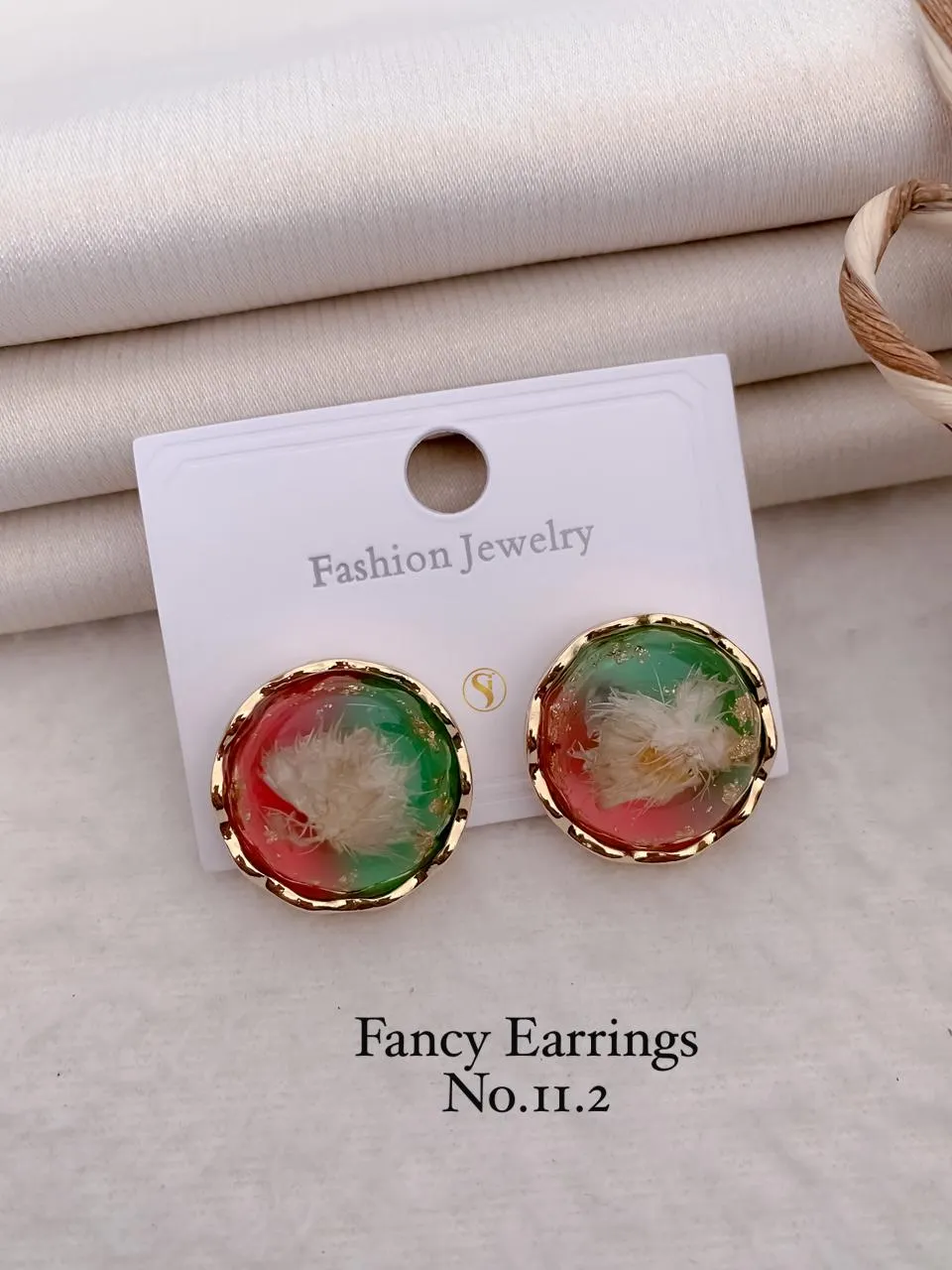 + Free ShippingPastel resin round statement earrings with artistic color blend perfect for modern stylish and bold looks|Details:|- Metal: brass+Silver +alloy with Premium Polish|- Closure: push back|- SKU Code: JG_ER_0 (40)