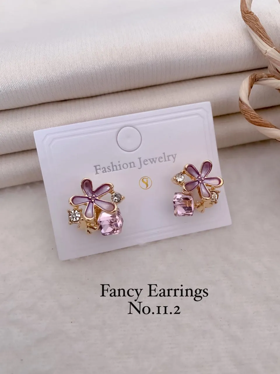 Purple floral crystal studs with pastel petals and sparkling stones creating a graceful finish ideal for daily wear office looks and festive styling.|Details:|- Metal: brass+Silver +alloy with Premium Polish|- Closure: push back|- SKU Code: JG_ER_0 (29)