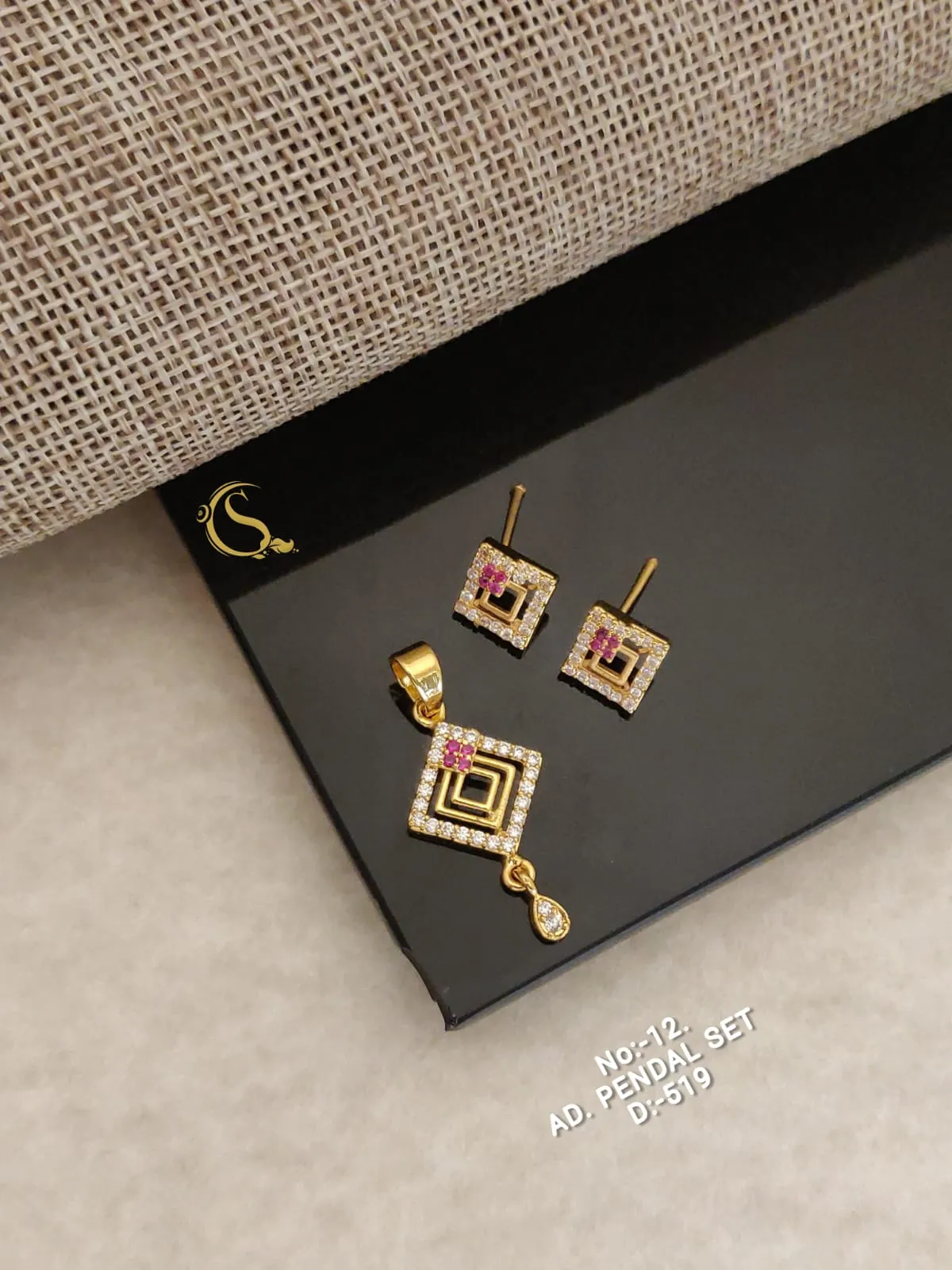 contemporary square-pattern AD pendant set featuring neat lines and dual-tone